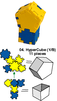 The shape is called the HyperCube, because you have a Hyperbox (= the box made with 5 square puzzle pieces + 2 pentagonic pieces) connected with a Cube